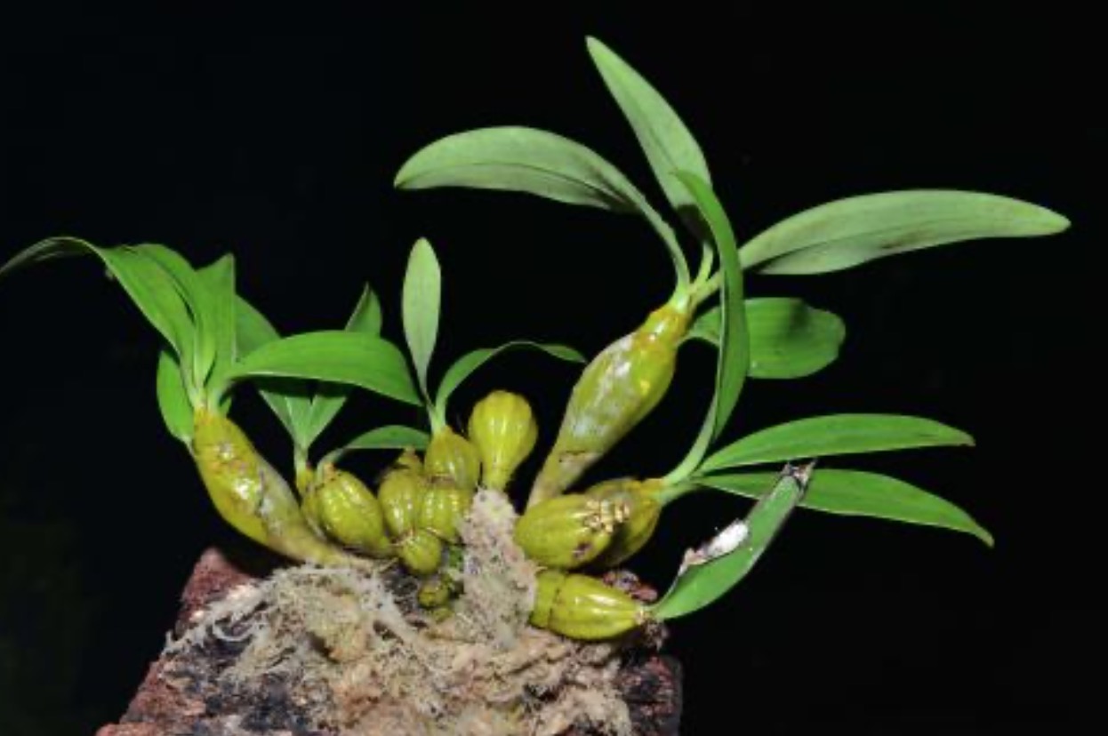铁皮石斛除了翠绿的叶子,饱满的假鳞茎,它还可以开出橙色的花朵,栽种并不太困难。很多朋友在室内养不好铁皮石斛,其实最关键的就是环境空气湿度不够,或环境通风不好。