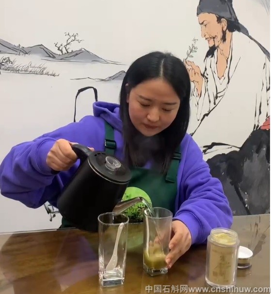 3.热水调羹:将25度的水100ml左右倒入洗净的杯子中留底,以防微粉结块浪费,取2克霍山石斛超微粉倒入杯子中,用调羹不断搅拌,在将90度以上开水400ml沿着杯壁慢慢倒入,(或者根据个人喜好加入5克左右的蜜糖)。